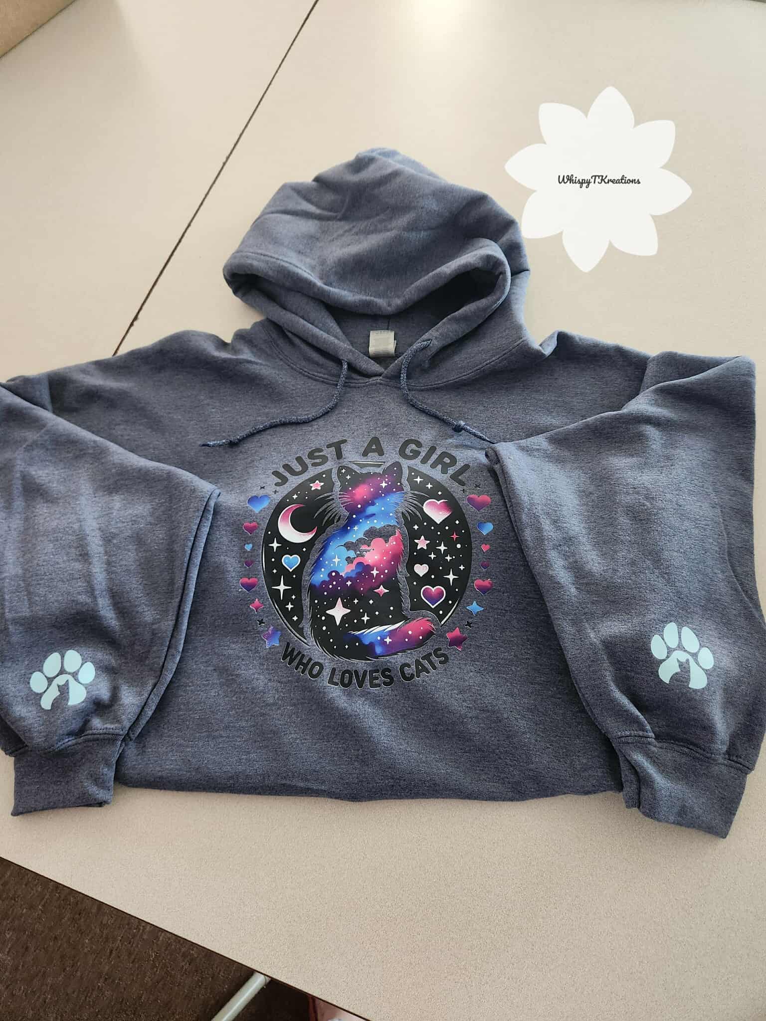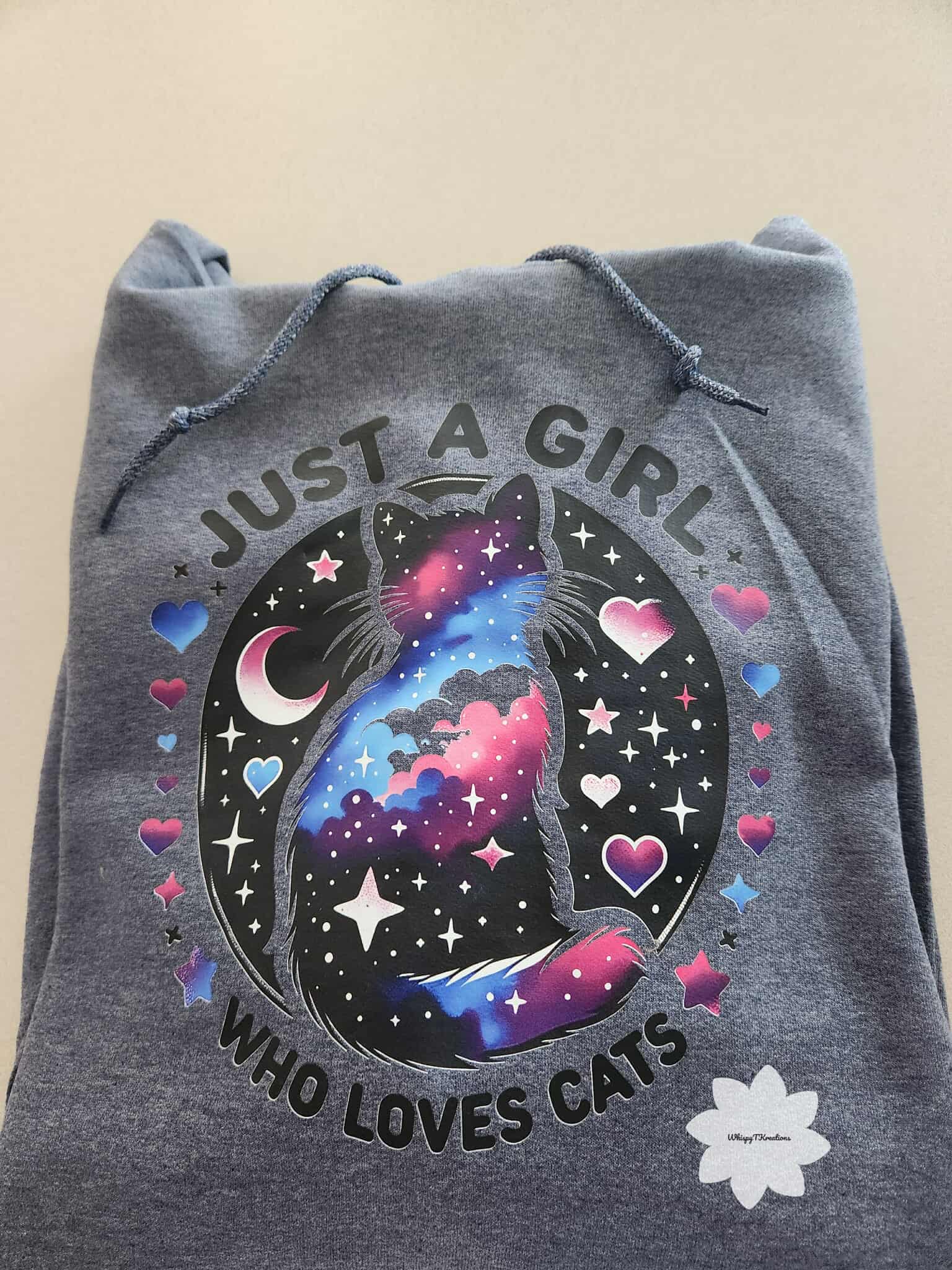 Designed specifically for cat lovers, the "Just a Girl Who Loves Cats" hoodie combines comfort with a meaningful design. Featuring a charming kitty icon, this hoodie lets you proudly display your affection for felines in a stylish and understated way. Crafted with quality materials, it offers warmth and durability, making it the perfect choice for everyday wear or relaxing at home. Embrace your love for cats with this expertly crafted hoodie made just for you.